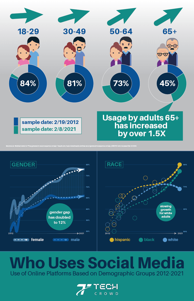 I designed this social media usage infographic to present key statistics and trends in a way that's both visually engaging and easy to understand. The piece breaks down different aspects of social media behavior, from platform preferences to demographic insights, using a combination of icons, charts, and concise text.